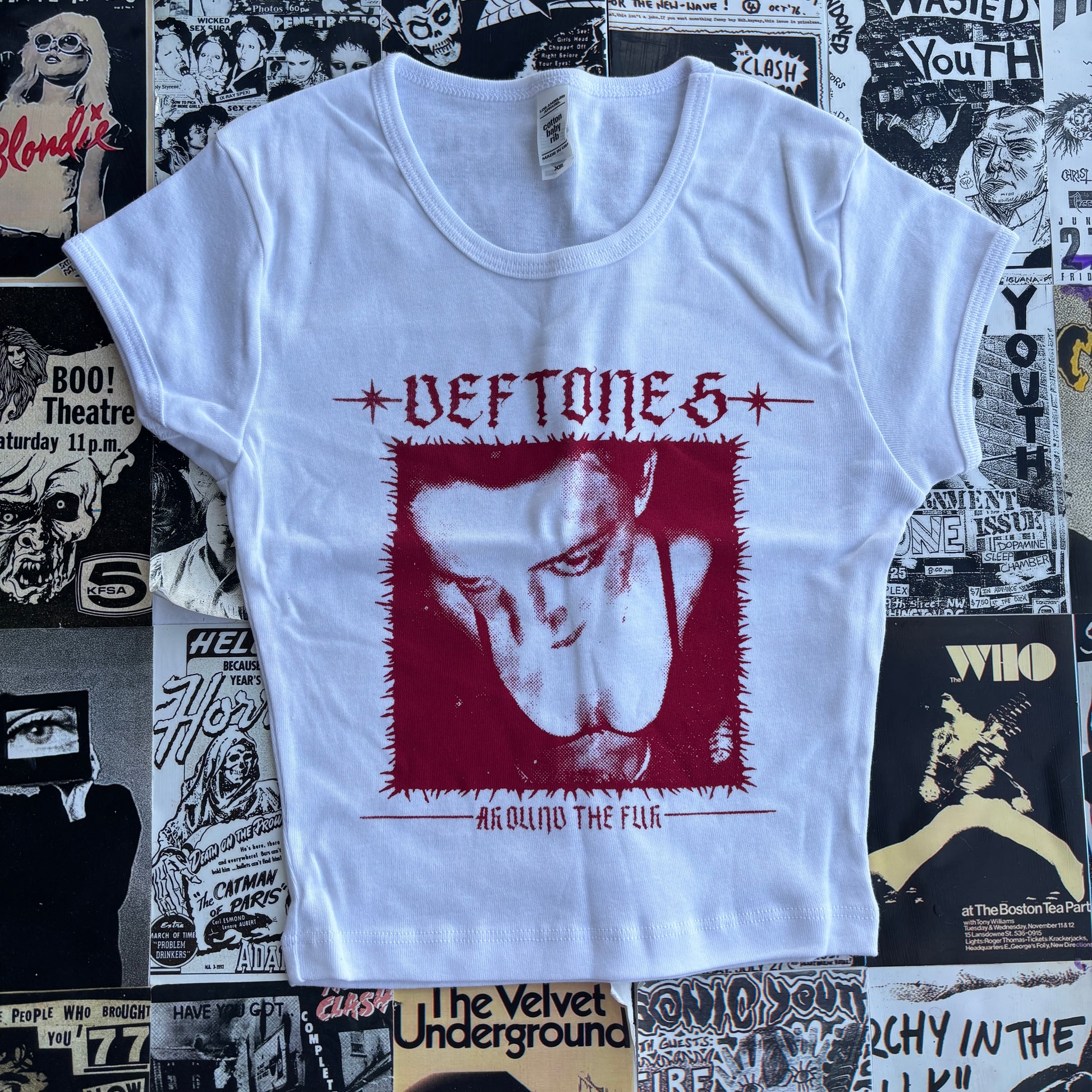 Deftones white/red baby tee XS