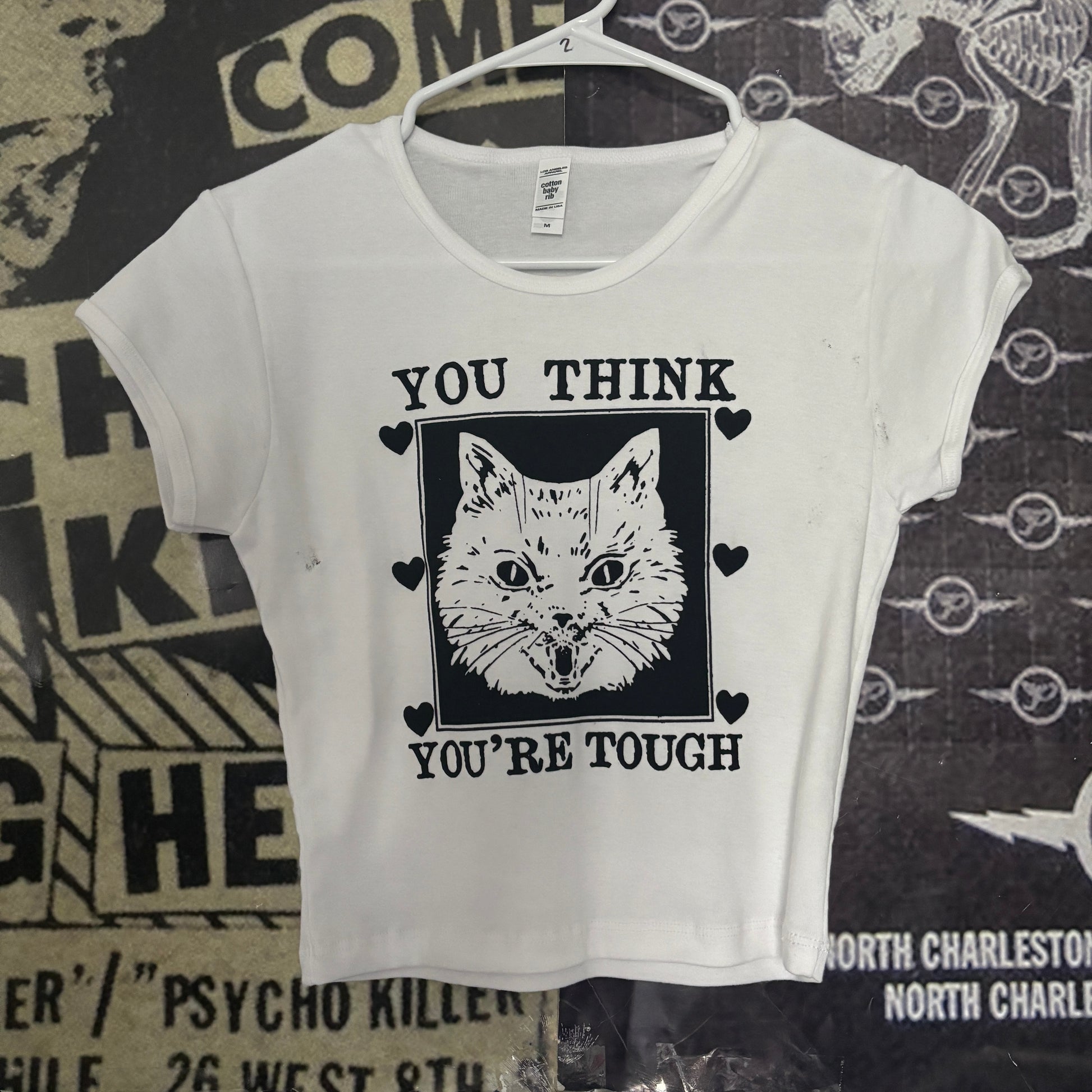 Tough cat white crop baby tee